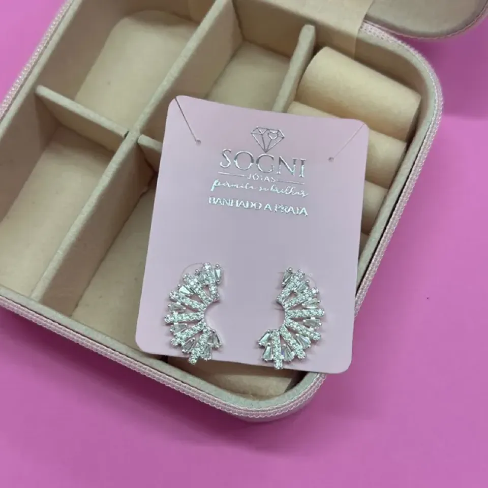 A Argola Leque Cravejado, banhada a prata, é uma peça deslumbrante que combina elegância e originalidade. Com um design em forma de leque, essas argolas são adornadas com pequenas pedras que brilham intensamente, criando um efeito encantador e sofisticado. O acabamento em prata proporciona durabilidade e um toque refinado, tornando-as ideais tanto para ocasiões especiais quanto para o uso diário. Leves e confortáveis, essas argolas são perfeitas para quem busca um acessório que se destaque e adicione um toque de glamour a qualquer look. Uma escolha perfeita para brilhar com estilo!